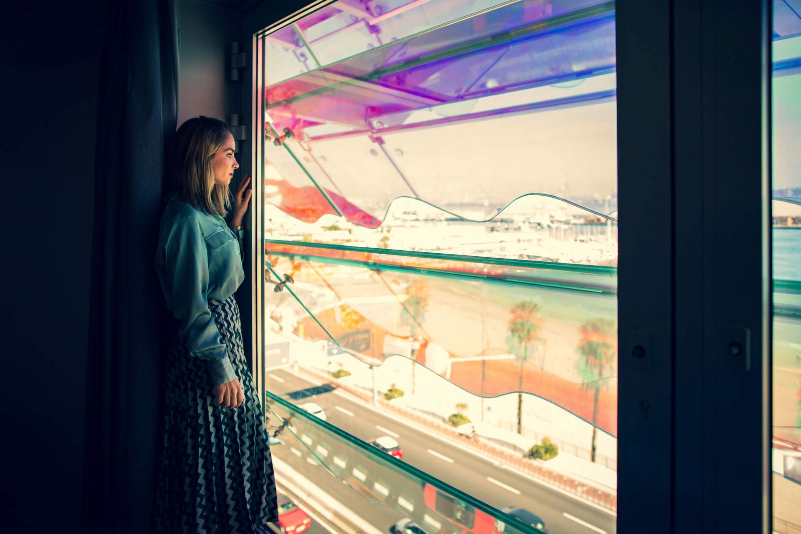 En el nivel más alto un rooftop panorámico, destinado a actividades de restauración y ocio, ofrece vistas privilegiadas sobre la bahía, consolidando la experiencia del hotel como un enclave urbano abierto al frente marítimo.