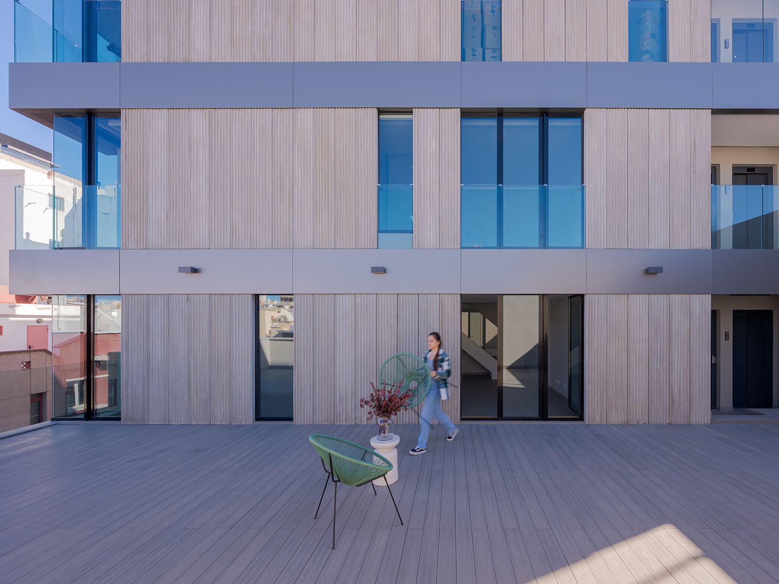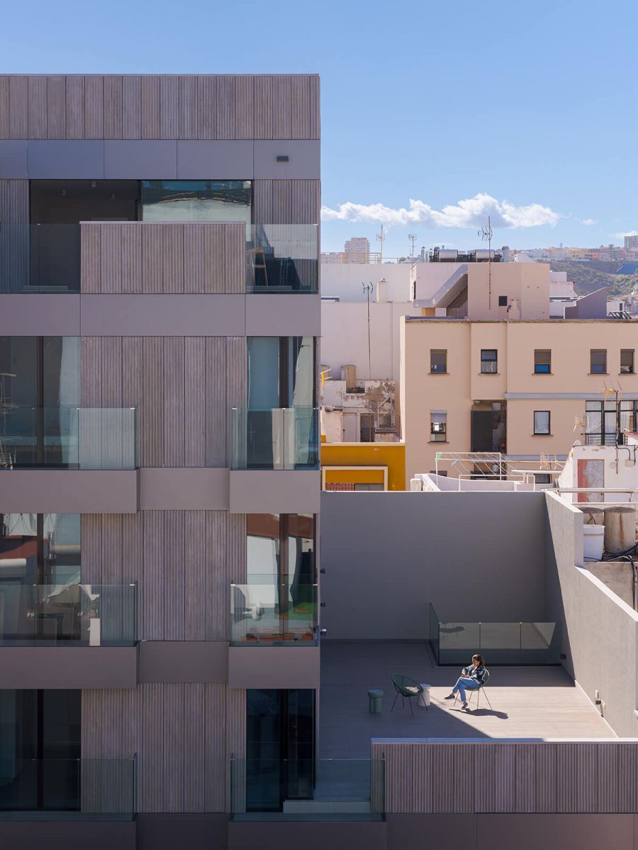 Con el objetivo de hacer sostenible el modelo de vida tradicional -y, si cabe, hacerlo más inclusivo y verde- optamos por una estrategia pragmática, operando dentro de las reglas que rigen las nuevas dinámicas urbanas. Para priorizar a las azoteas, renunciamos deliberadamente a la extrusión automática de un volumen compacto que agotara las posibilidades del planeamiento y del emplazamiento. A cambio, fue necesario renegociar y compensar la edificabilidad disponible mediante la propuesta de viviendas y materiales de calidad, deseables a los ojos de sus futuros habitantes.